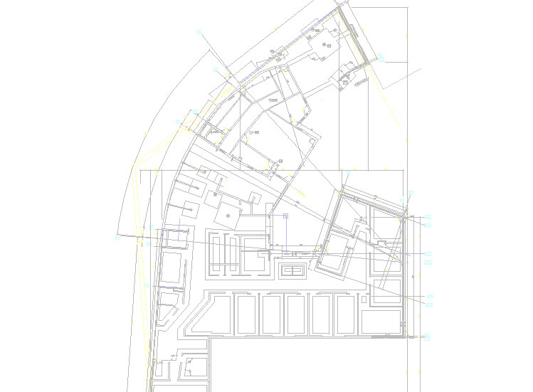Gebäudeabfangung in EG-Deckenebene mit Wandscheiben und Unterzügen